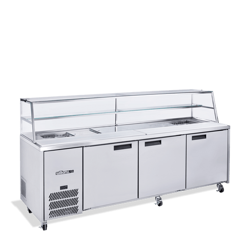 Williams Jade Pizza - Three Door White Colorbond Pizza Prep Counter Refrigerator With Blown Air Well HJ3PCBA
