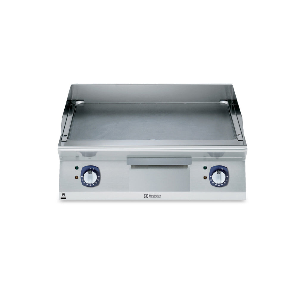 With double the cooking width, the Electrolux Professional 700XP 800mm electric griddle is ideal for high-throughput commercial kitchens demanding performance, reliability, and clean operation. Made in Italy, this smooth brushed chrome model is crafted for efficient heat transfer, easy maintenance, and lasting durability in demanding environments.