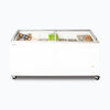 The angled top curved glass chest freezer offers the perfect display for ice cream and frozen food.