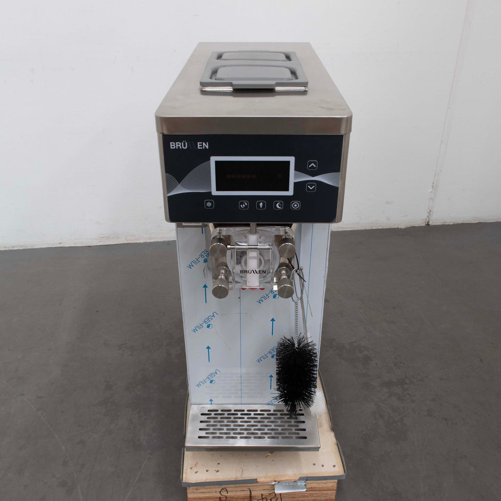 Soft Serve Machine. Features 34Lt per hour production, Mix Hopper Capacity: 12 L, Freezing Cylinder Capacity: 2L, Gravity Feed, On feet, Plastic scraper blade, S/S Finish, Scratches & Dents, Approx. 210 - 425 serves per hour, Single flavour countertop machine, Soft touch buttons operator menu, 15 Amp 1 Phase, 320mmW x 780mmD x 880mmH, 105KG