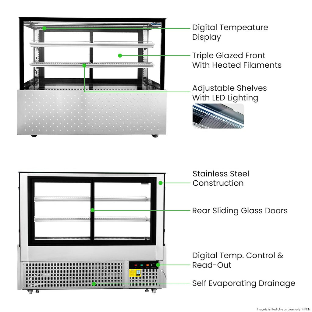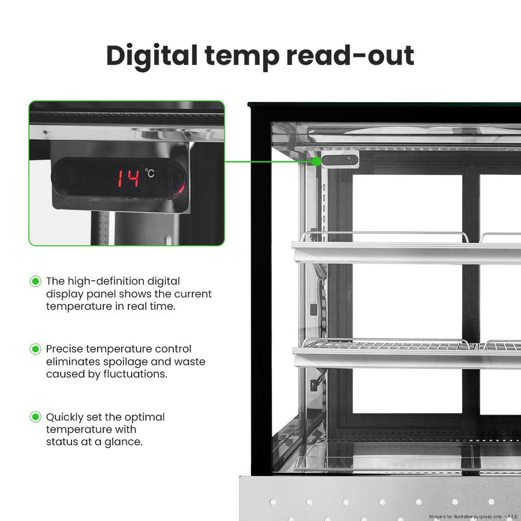 These chilled cake displays are great for bakeries, health food stores, takeaway shops, and cafes serving, presenting, and keeping cakes, pastries, salads, wraps, sandwiches, and other light meals cool and fresh.