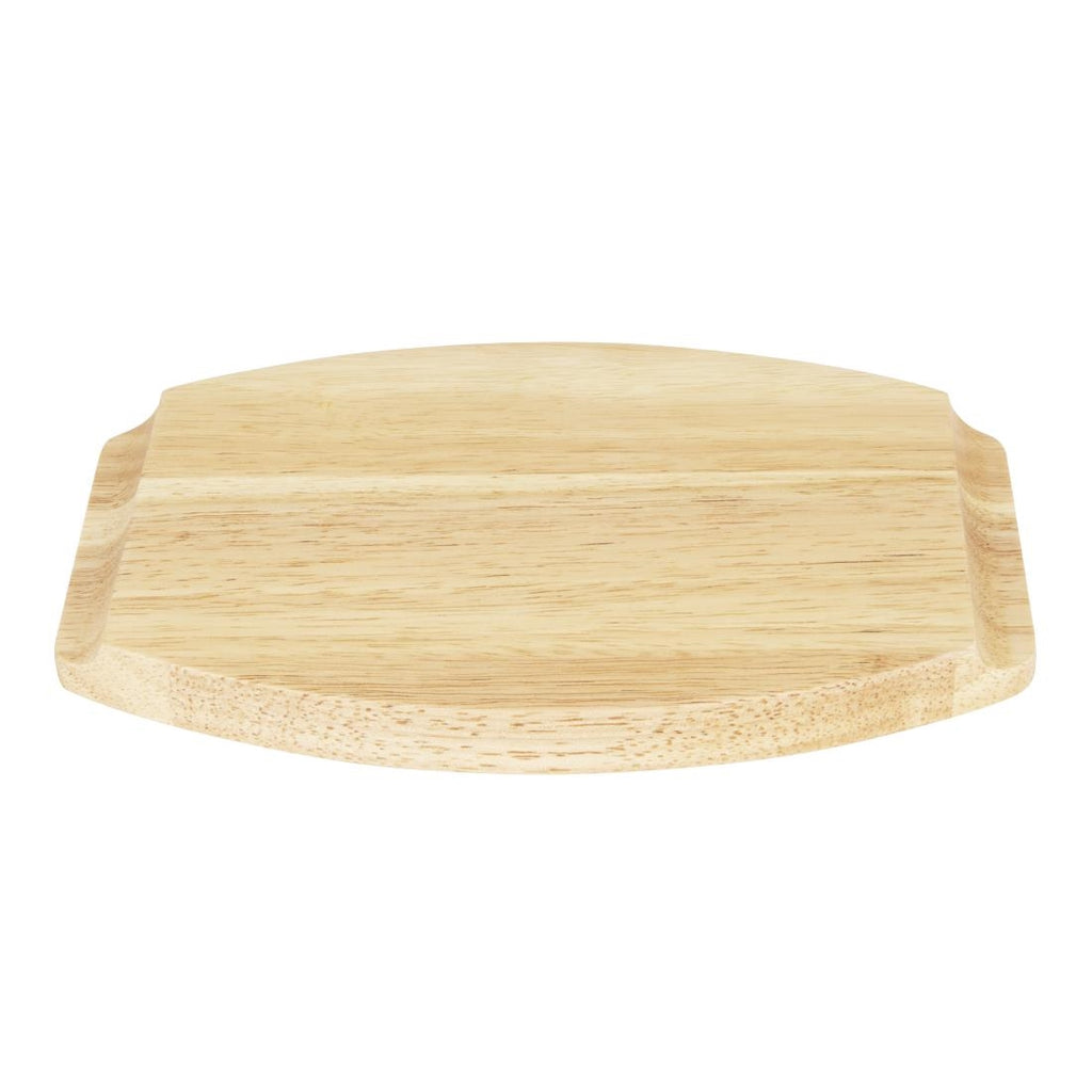 Seamlessly transition your piping hot pots and pans from oven to table with this wooden hevea serving board base from Olympia. Measuring 260 x 165mm in sizer, the thick, highly durable Hevea wood acts as a natural heat shield, protecting your table surface from damage. Furthermore, the wood's inherent marbling adds a touch of rustic charm to your service.
