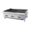Grill efficiently and with ease with the CookRite 910mm Char-Rock Broiler. Heavy duty in its construction, this broiler comprises a stainless steel body and a cast iron grill to work on, complete with standby pilots and flame failure. It also includes volcanic rocks to assist in channeling heat for precise cooking. Designed to sit on a bench, the legs are fully adjustable so to you can customise the grill to suit your workspace. Robert Shaw valves and controls are American-made and easy to use, incorporating independent burner controls and manual ignition. The unit is corrosion resistant for easy maintenance, and the drip tray is removable for easy cleaning.