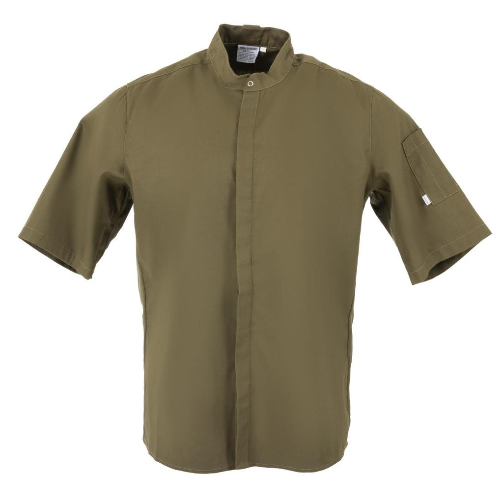 Lightweight and breathable, the Southside band collar khaki chef jacket is a fantastic combination of style, durability and everyday comfort. With short sleeves and breathable panels under the arms, the jacket is an excellent choice for hot areas, as airflow is promoted around the body to keep you cool.The short sleeves also include a handy pen pocket - a great option for a bit of storage if...