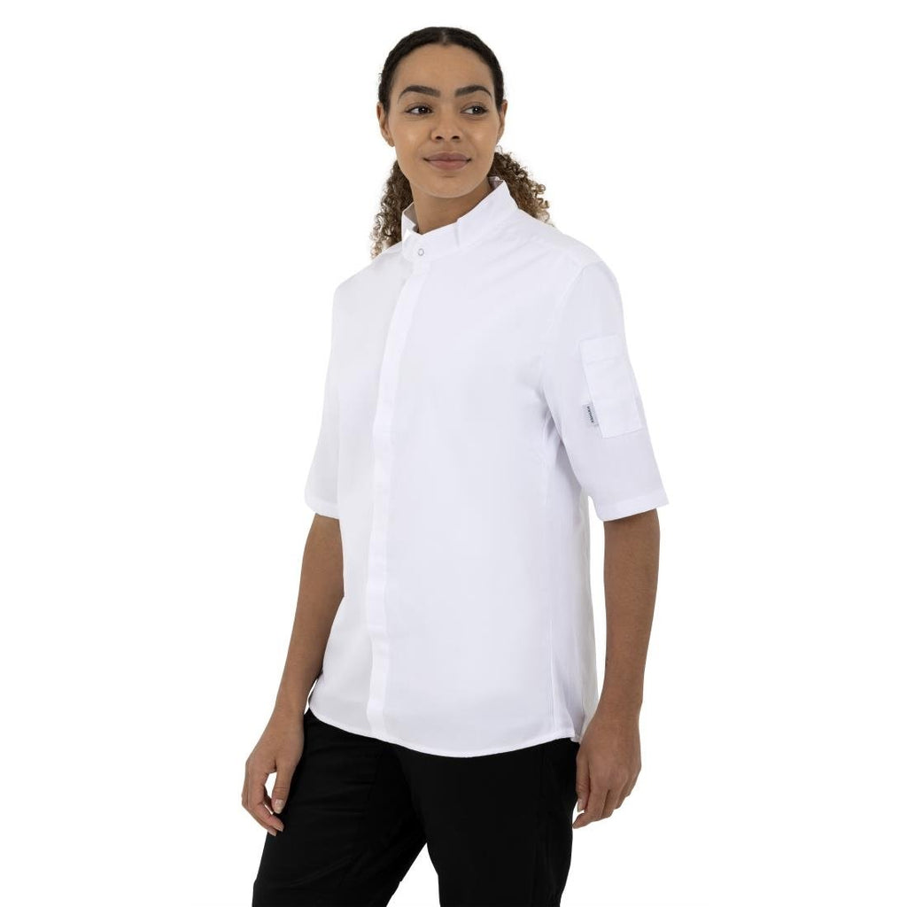 Keep your chefs cool with the professional white band collar jacket (XL) from Southside. Made from a 190-gram material this jacket is incredibly lightweight, allowing you to remain cooler in hot environments. Also, the short sleeves and breathable panel further assist in cooling your chefs while they work in hot kitchens. The band collar is not as heavy as a typical double breasted chef's jacket collar, making...