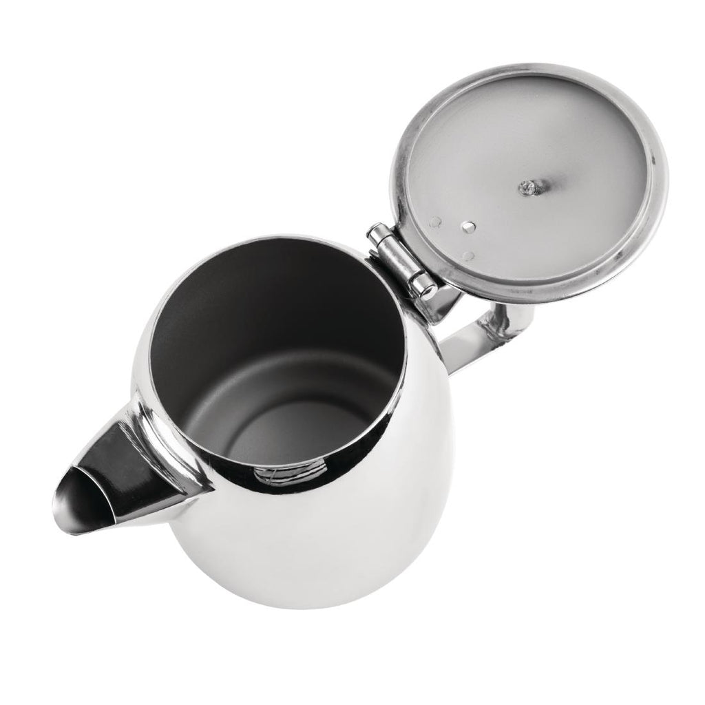 Adding a stylish touch to your beverage service is made simple with this 12oz Olympia Cosmos stainless steel teapot. Thanks to its high-polish, mirror finish, this teapot offers an elegant look that's sure to enhance the presentation of your hot drinks. A heat-resistant handle keeps this teapot cool to the touch too, so there's no risk of staff or customers harming themselves when handling hot beverages.