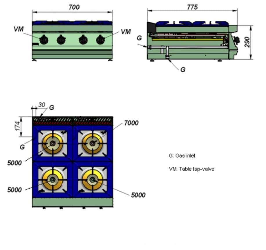 Fagor 700 series natural gas 4 burners boiling top with cast CG7-40H