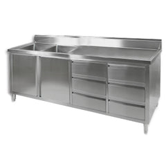 ALL STAINLESS STEEL KITCHEN TIDY CABINET WITH SINK, DOORS & DRAWERS