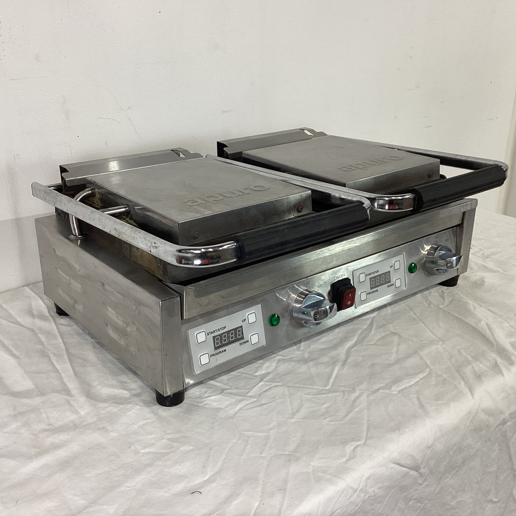 Contact Grill. Features Flat plates, Timer, Top & bottom heating, Rubber feet, S/S finish, Surface scratches, 15 amp 1 phase, 540mmW x 400mmD x 200mmH, 28KG