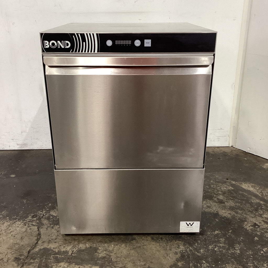 Undercounter Dishwasher. Features 4 wash cycles and self cleaning cycle, Pump drain, Detergent dispenser, Rinse aid dispenser, Dish rack, Glass rack, Cutlery holder, Adjustable feet, S/S finish, Scratches & dents, 15 amp 1 phase, 575mmW x 600mmD x 825mmH, 55KG