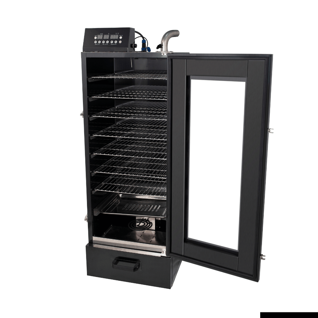 Engineered for versatility and performance, this smoker house blends traditional wood chip smoking with modern digital precision. Featuring integrated drying and smoking functions, accurate temperature control, and an 8-tier rack system, it’s perfectly suited for processing a variety of foods—from meats and seafood to tofu and plant-based alternatives. Practical inclusions such as a removable wood chip box, drip tray, concealed disc heating element, and adjustable chimney ensure efficient operation, straightforward cleaning, and consistent results. Ideal for commercial kitchens, food production facilities, boutique smokehouses, and premium catering environments.