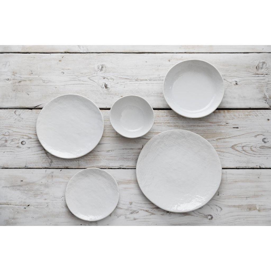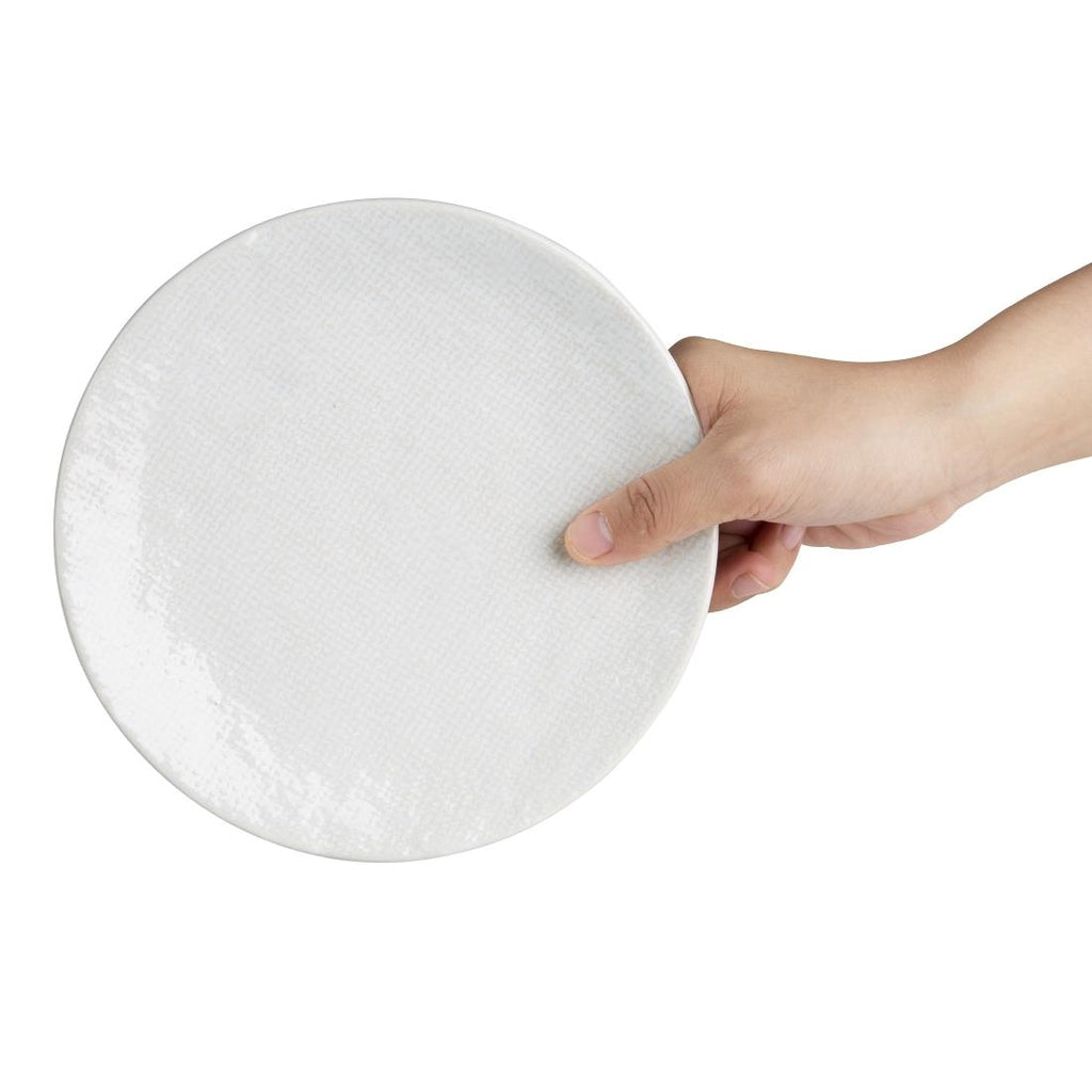 Olympia's Denim range features an all-over textured embossment that draws inspiration from organic, woven materials. This decorative textile finish lends the range its name, Denim. Available in a blue or white colourway, Denim is designed for mixing and matching.Crafted from porcelain, these Denim White coupe plates are ideal for daytime dining...