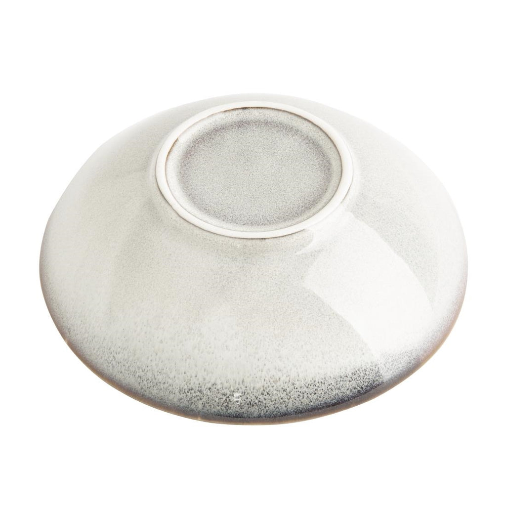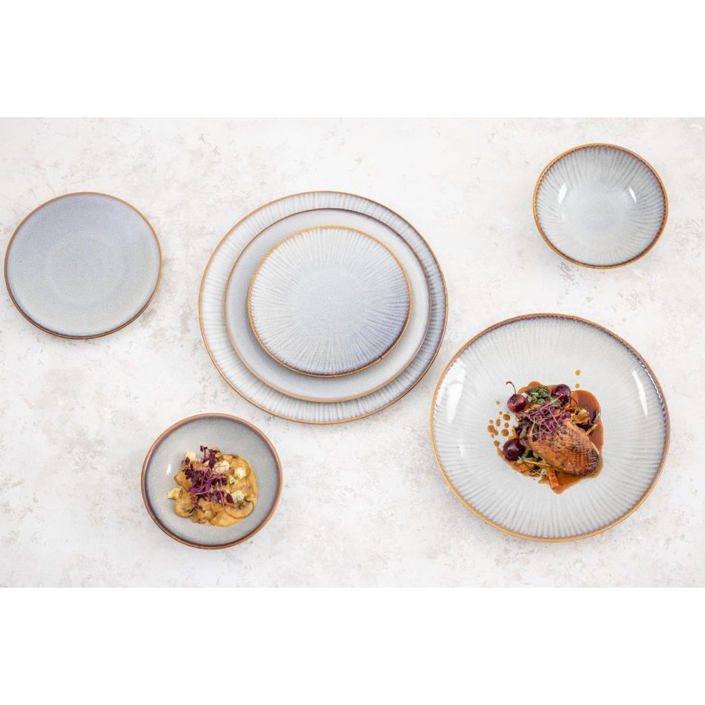 Olympia's Drift range is available in either a plain coupe shape or with a faint fantail embossment along the rim. Designed to complement each other, the plain and embossed options allow for versatile combinations. These Drift embossed coupe bowls feature a sleek pale grey reactive glaze and a contrasting rim that not only adds a touch of style but also shapes the bowl perfectly....