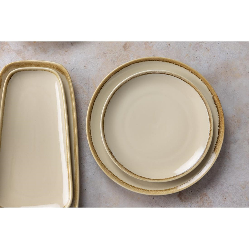 The soft and gentle colour of this Sandstone plate from Olympia's Kiln collection is perfect for serving a slice of light Victoria sponge or a small sandwich. The finish of the plate is achieved by using a specially developed reactive glaze. The glaze reacts with the minerals in the clay and ensures that every plate has its own slightly unique finish.
