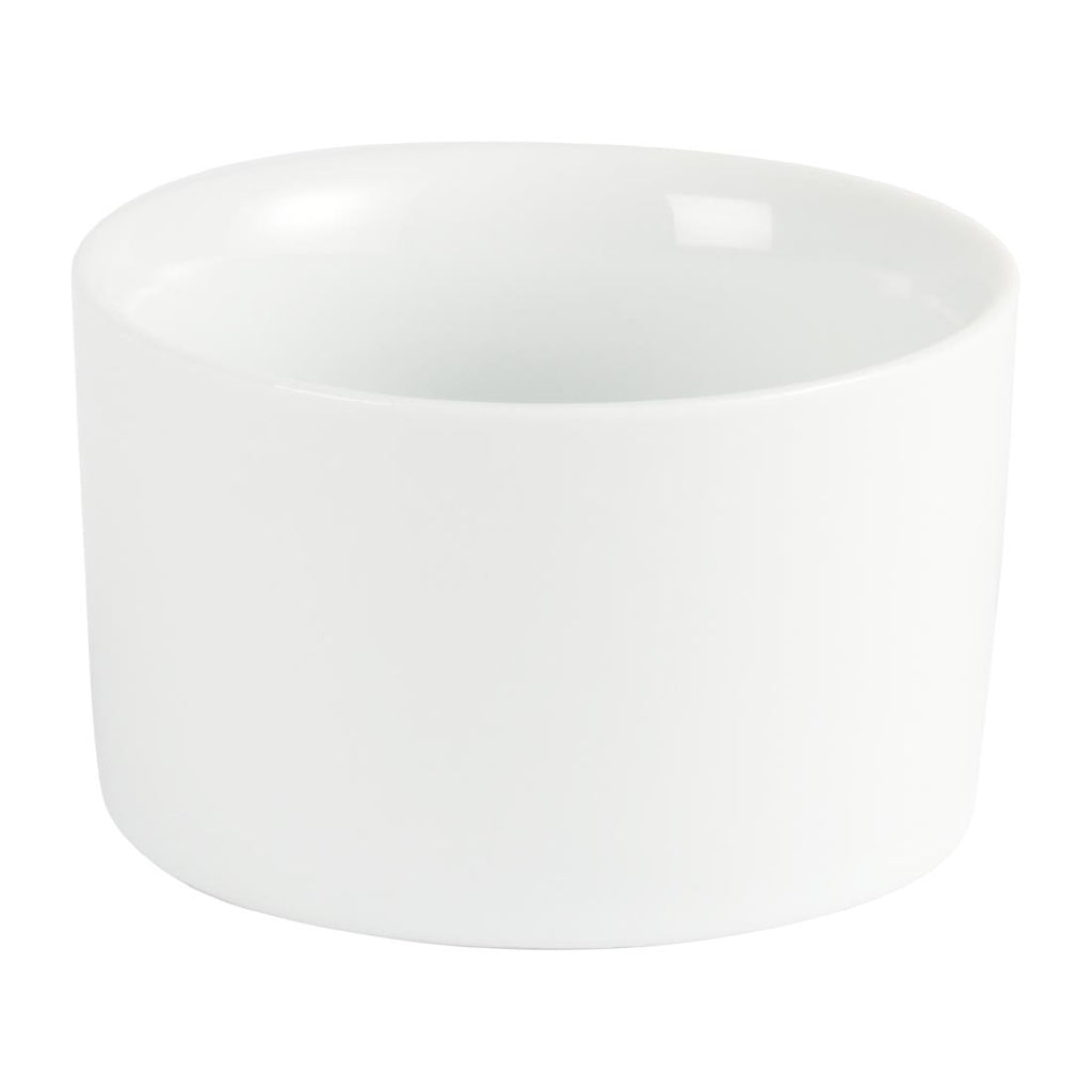 An appealing, pure white 80mm contemporary ramekin from Olympia, is designed to provide a great value and hardwearing porcelain crockery solution for busy hotels, canteens, casual dining restaurants and cafés. The strengthened rolled edges ensure the ramekin is highly chip resistant, and the fully vitrified body gives a great glaze durability, making it ideal to withstand the rigours of the professional catering environment. The ramekin is stackable, helping to maximise storage space, and it is also oven, microwave, dishwasher, and freezer proof, so it can be used in multiple different temperatures without breaking.