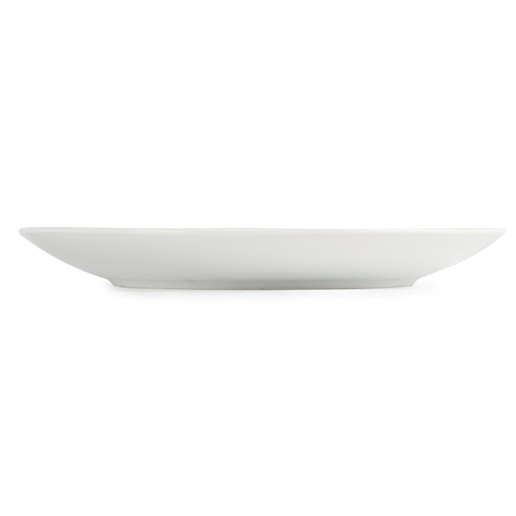 An appealing, pure white 12 1/4" Coupe plate from Olympia, designed to provide a great value and hardwearing porcelain crockery solution for busy hotels, canteens, casual dining restaurants and cafés. Strengthened rolled edges ensure the plate is chip resistant and the fully vitrified body gives great glaze durability, making it ideal to withstand the rigours of the professional catering environment. The plate is stackable, helping maximise storage space, and oven, microwave, dishwasher and freezer proof.