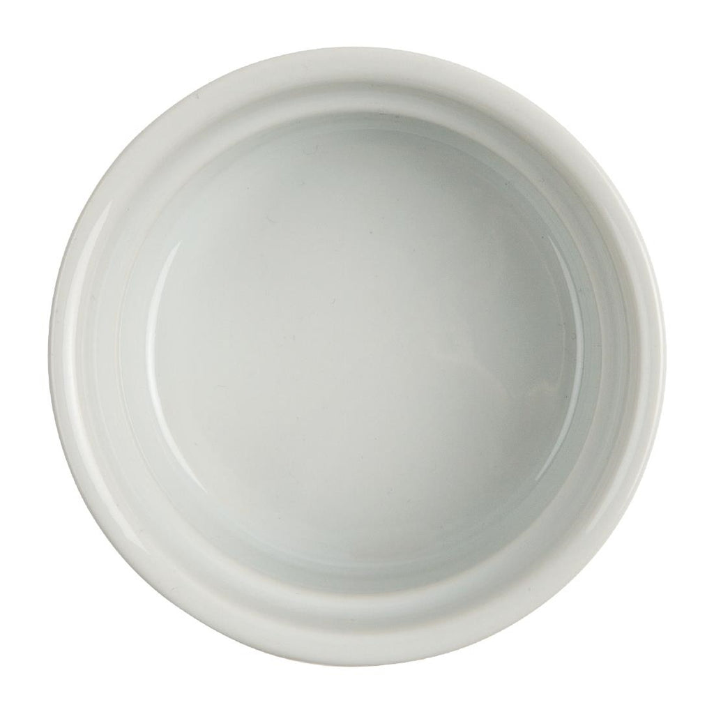 A welcome addition to any table, this versatile ramekin from Olympia is designed to provide a great value and hardwearing porcelain crockery solution for busy hotels, canteens and restaurants. Strengthened rolled edges ensure the ramekin is chip resistant and the fully vitrified body gives great glaze durability, making it ideal to withstand the rigours of the professional catering environment. The ramekin is oven, microwave, dishwasher and freezer proof.