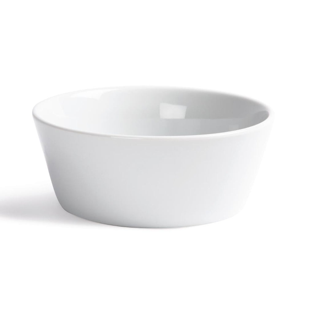 An appealing, pure white 6" sloping edge bowl from Olympia, designed to provide a great value and hardwearing porcelain crockery solution for busy hotels, canteens, casual dining restaurants and cafés. Strengthened rolled edges ensure the bowl is chip resistant and the fully vitrified body gives great glaze durability, making it ideal to withstand the rigours of the professional catering environment. The bowl is stackable, helping maximise storage space, and oven, microwave, dishwasher and freezer proof.