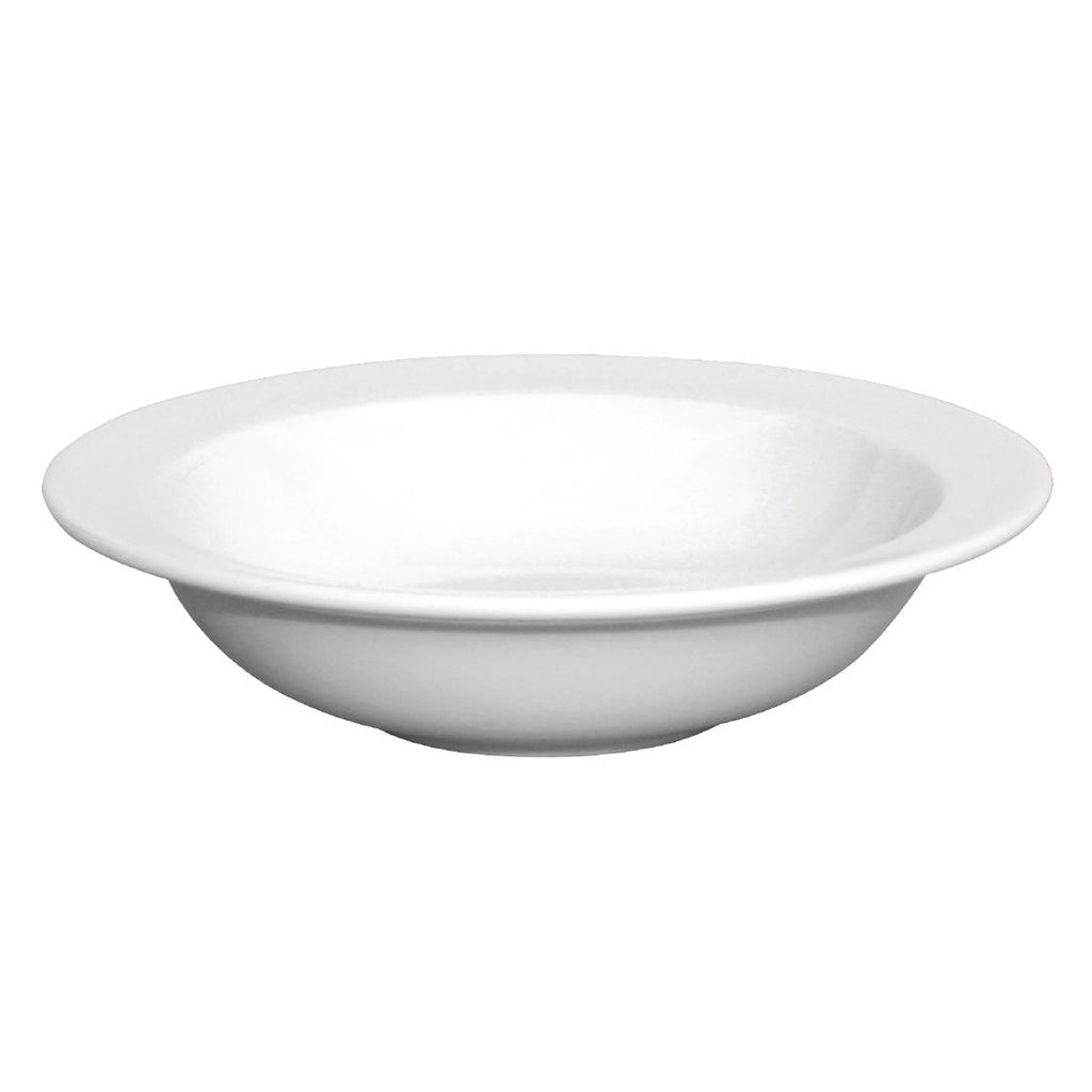 Equipped with a wide rim for presentational and practical applications, the rimmed edge can be used to aid with staff serving technique and offer the bowl stability when being placed in front of a customer. The rim also acts as a structured outline to enhance the aesthetic of any meal without detracting from the flavours. The deep centre gives this product a convenient stackable feature to help you maximise your storage space and keep this set in one place to reduce the risk of misplacing a bowl. Maintaining the quality of your products is important which is why the edges have been rolled for added strength and chip resistance as well as fully vitrified for heat and shock resistance to ensure glaze durability.