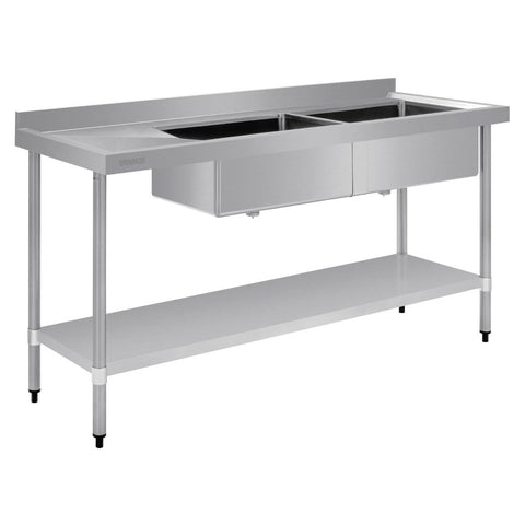 Vogue Dishwasher Inlet Table with Double Bowl Sink 90mm outlet 2400x700x960mmL/H - DE475