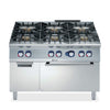 Equipped with six 36 Mj high-efficiency burners in two sizes (60 mm and 100 mm), this model offers continuous flame adjustment from 5.4 Mj to 36 Mj to suit a wide range of culinary tasks. Burners feature optimised combustion, flame failure protection, and a shielded pilot light, ensuring safe operation. Large cast iron pan supports with long centre fins accommodate everything from small saucepans to oversized stockpots, while the IPX5-rated water-resistant controls offer durability in busy environments.