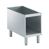 To be installed below other 900XP top units in island type installations with operations from one side. Open base to store pots, pans, sheet pans etc. Body and internal structure of unit entirely in stainless steel. Delivered with 150 mm height adjustable feet.