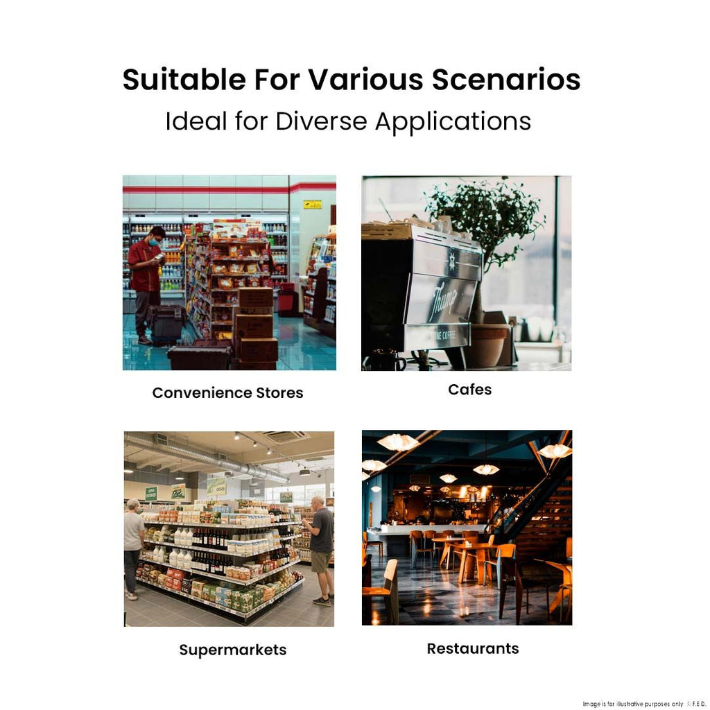 This countertop display unit stands out in the market with its significantly larger display area and an extra shelf, allowing businesses to showcase a greater variety of products prominently.
