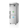 The Skipio Combination Fridge & Freezer - SRFT25-2 is a versatile unit that combines the benefits of both a fridge and a freezer, allowing you to save on electricity and space in your kitchen. This product is perfect for schools, cafes, restaurants, convenience stores, patisseries, bakeries, supermarkets, and bars/clubs. The fridge and freezer both have digital temperature control systems, and the unit features heavy-duty adjustable shelves to help keep your products organized and secure. The stainless steel interior and exterior ensures maximum cleanliness and longevity of the product. This unit is built with customer convenience in mind, with easy grip handles, self-closing doors, and rounded edges to reduce the risk of injury.
