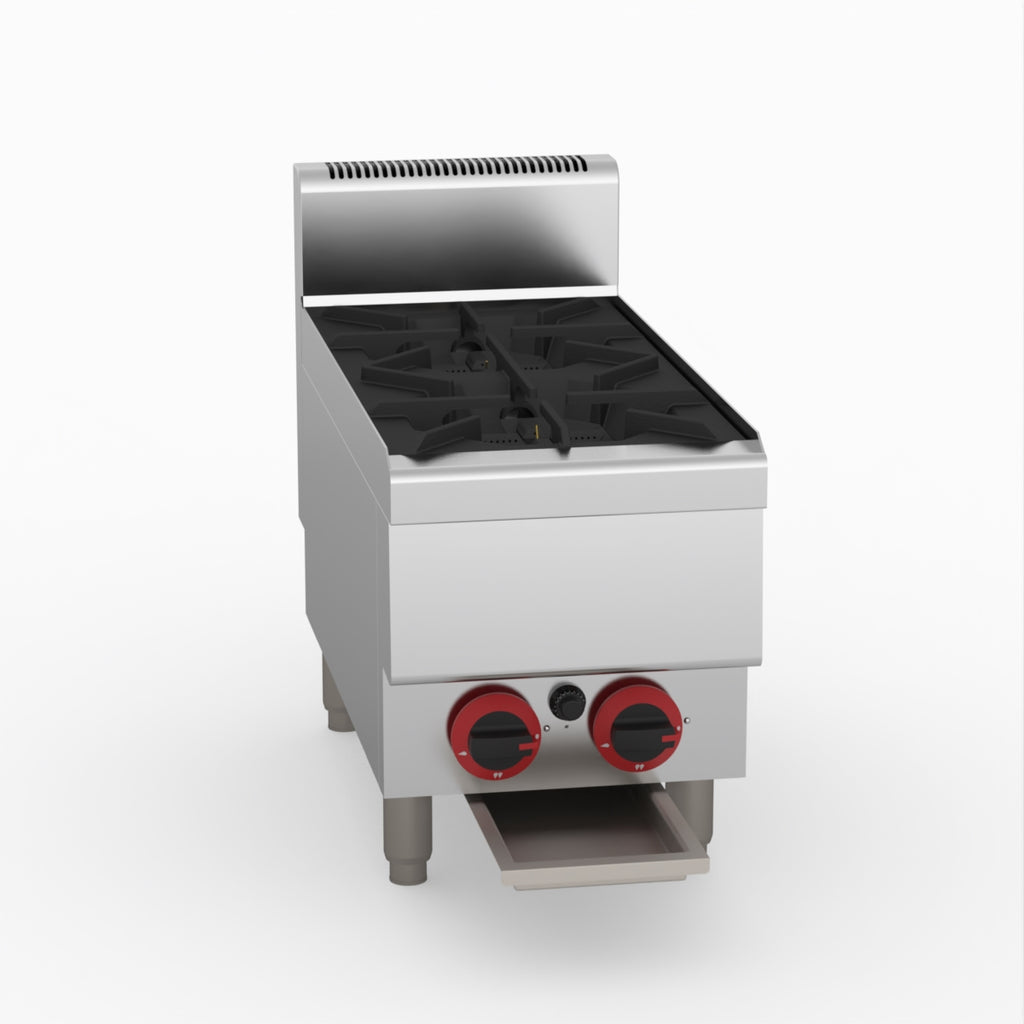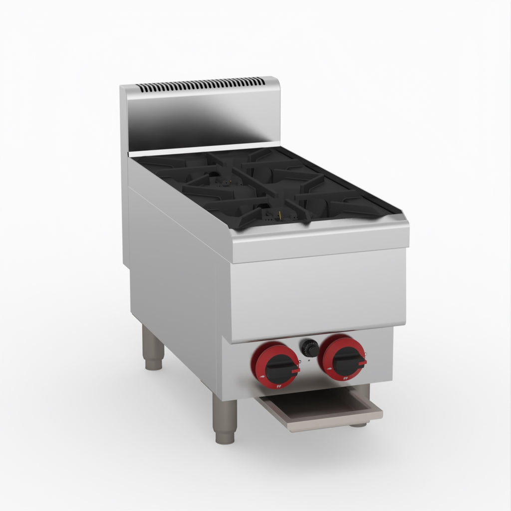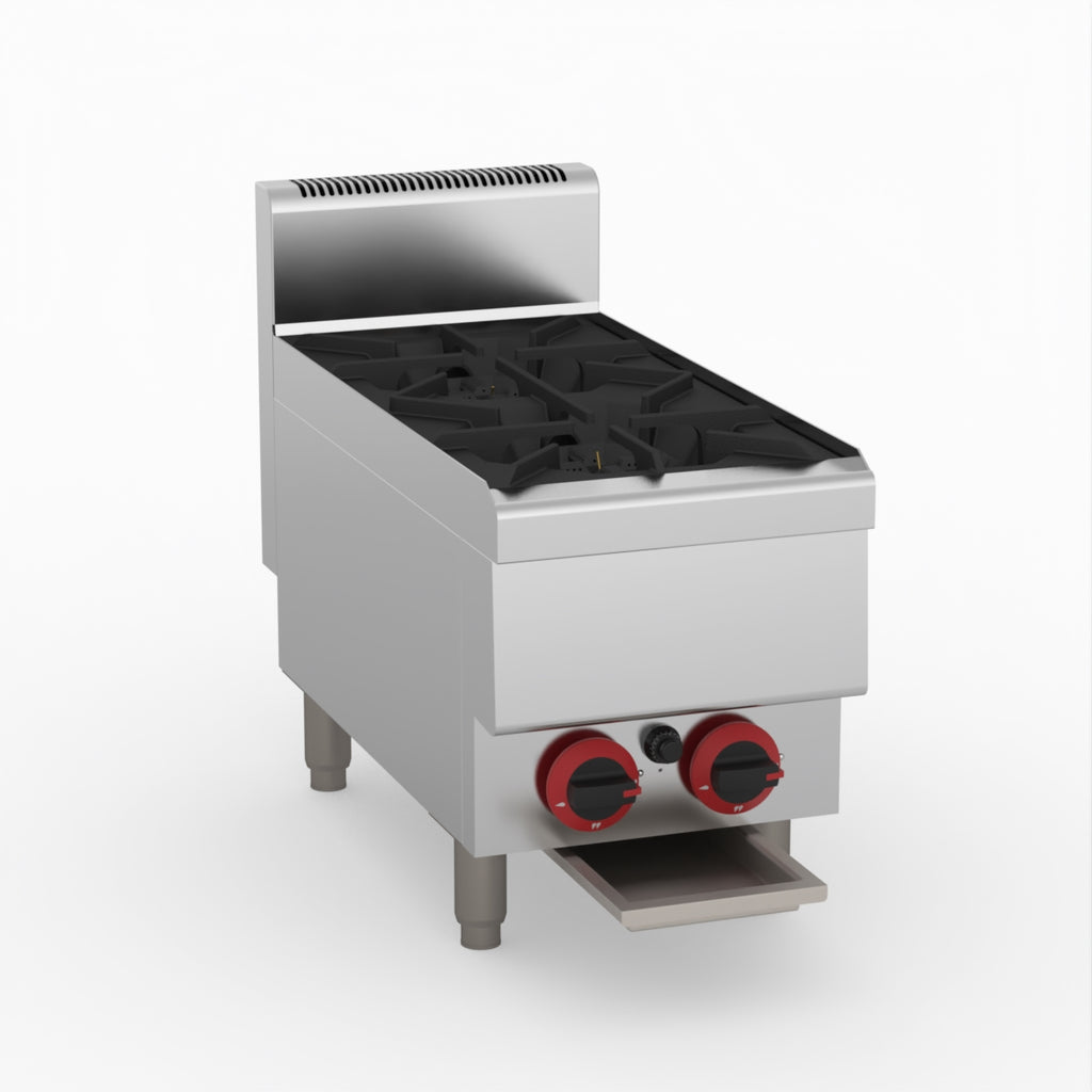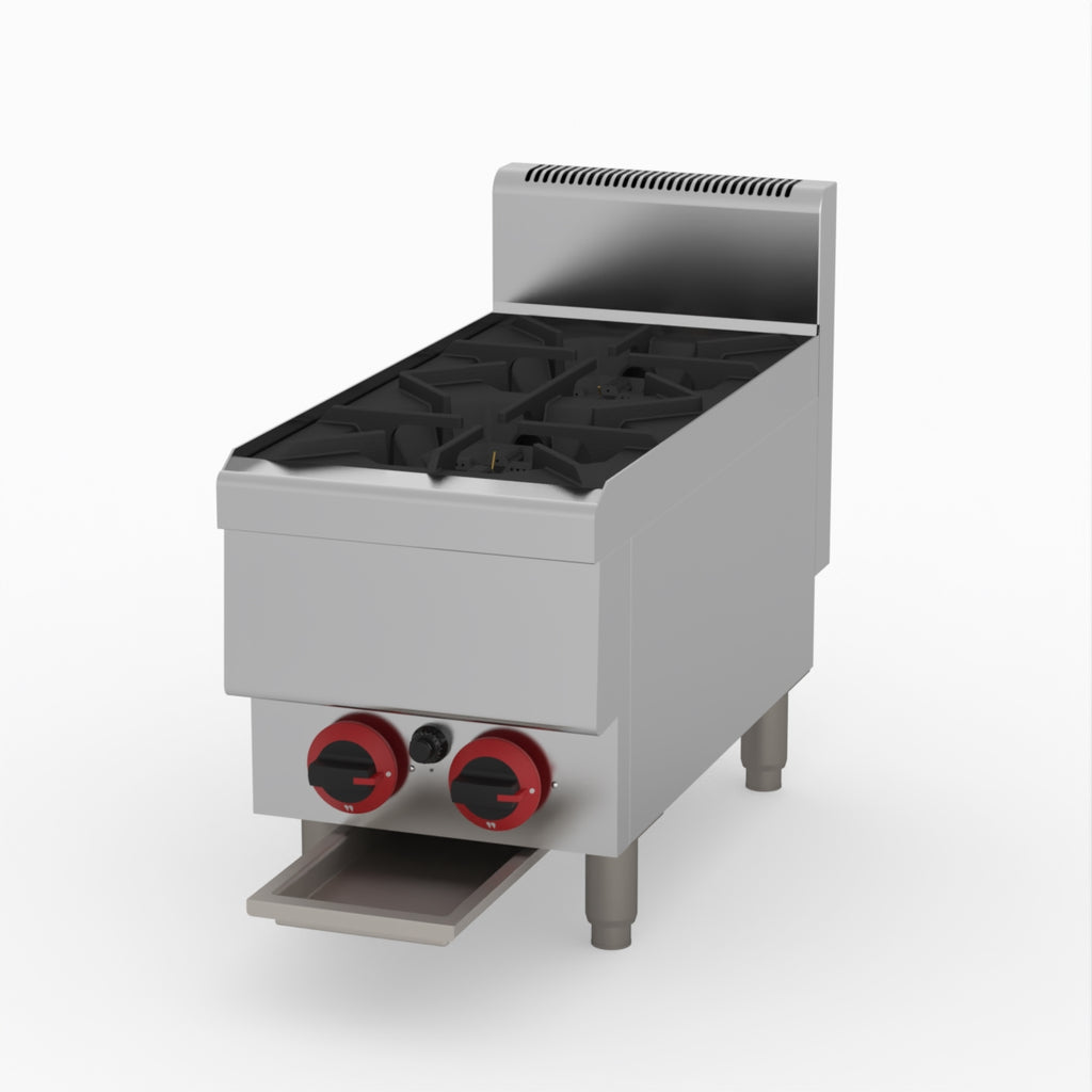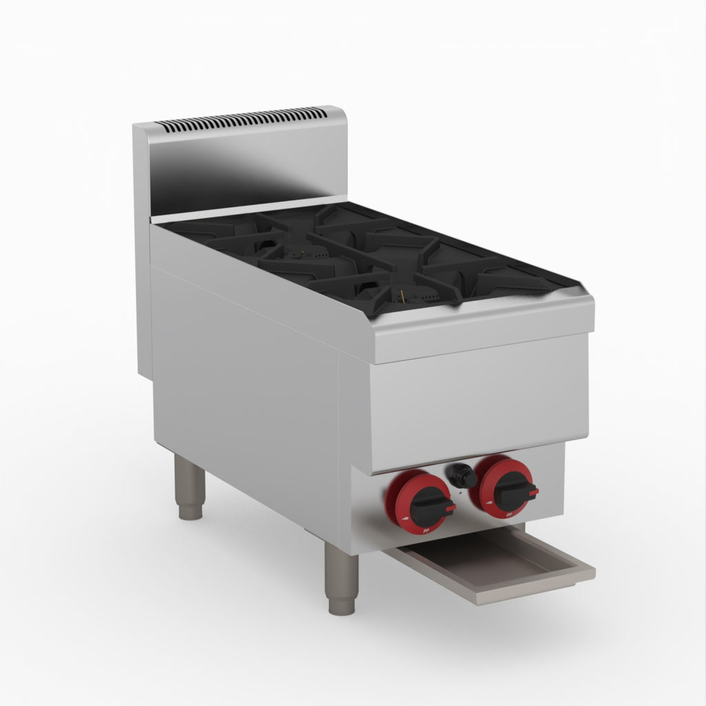 GasMax Benchtop Lpg 2 Burner Cooktop W/ Splashback JUS-TR-2BLPG