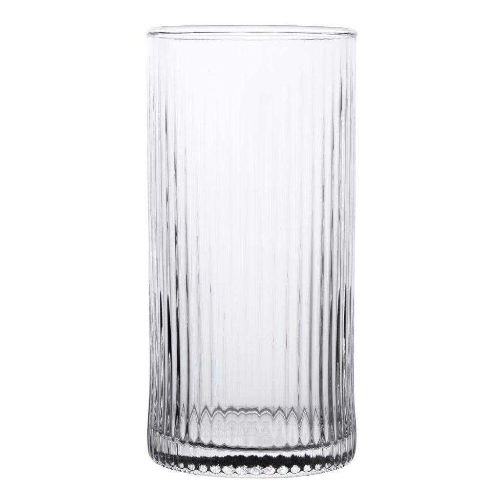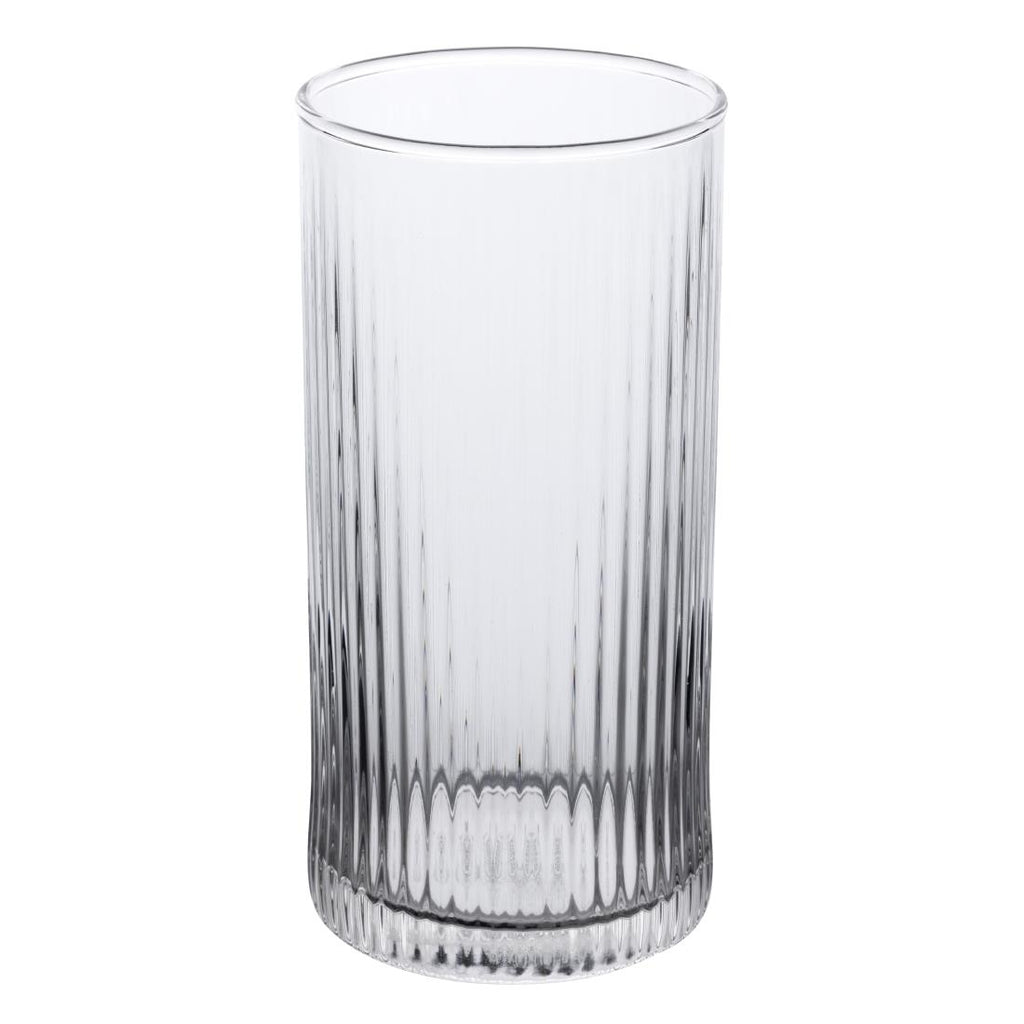 Featuring a contemporary ribbed design, these Chester long drink glasses from Olympia stand out in any bar or restaurant setting. The ribbed texture of the glasses is designed to enhance the presentation of specific cocktails, spirits and more. Made from durable soda lime glass, these Olympia 370ml long drink glasses are built to withstand frequent use and are dishwasher safe for quick returns to service.