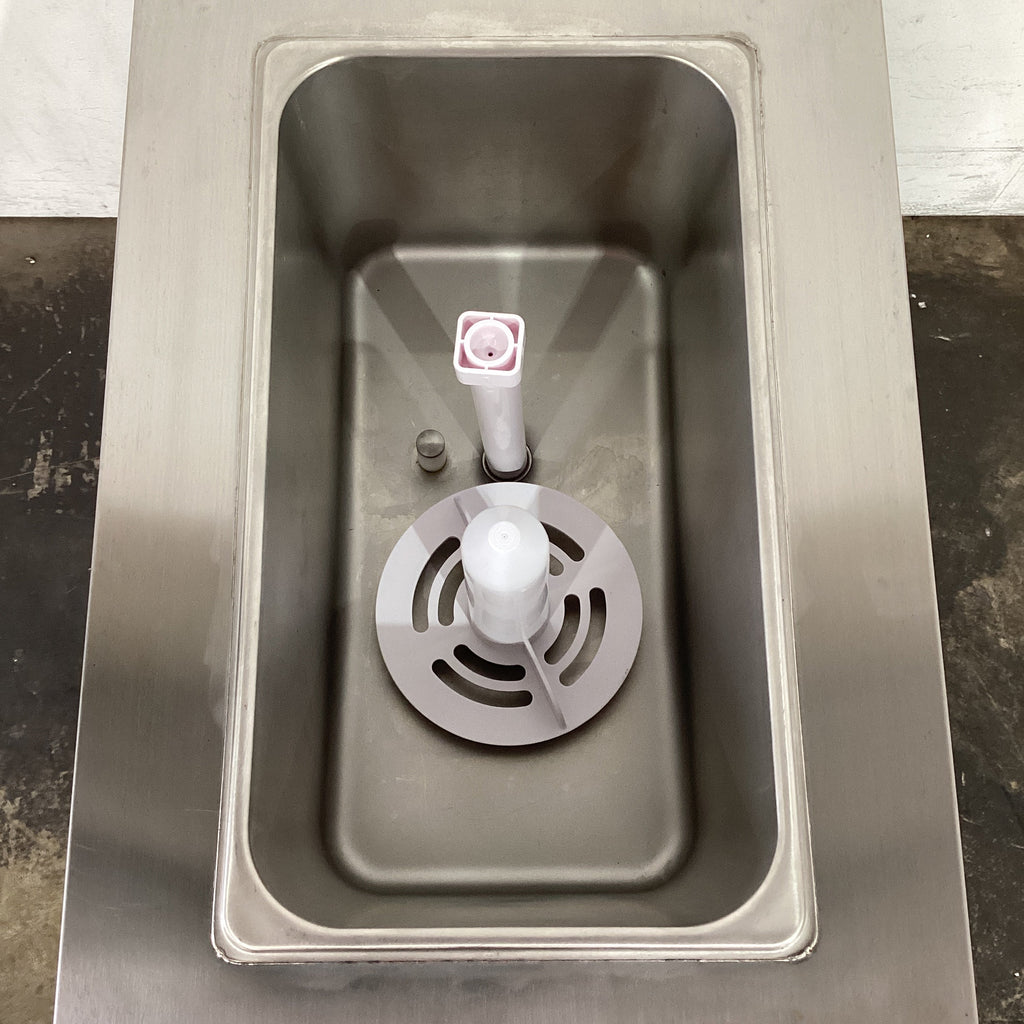 Ice Cream Machine. Features 34L/hr production, 1 x 12L pan, Gravity feed, On feet, Climate class normal, S/S finish, Surface scratches, 15 amp 1 phase, 320mmW x 850mmD x 890mmH, 105KG