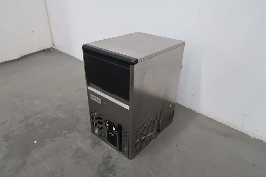 Ice Machine. Features 46kg Daily Production, 20kg Storage Capacity, Bottom Mounted Motor, Ice scoop, Adjustable feet, Climate class tropical, S/S finish, Scratches, Air?cooled, 10 amp 1 phase, Gravity drain,390mmW x 515mmD x 645mmH, 32KG