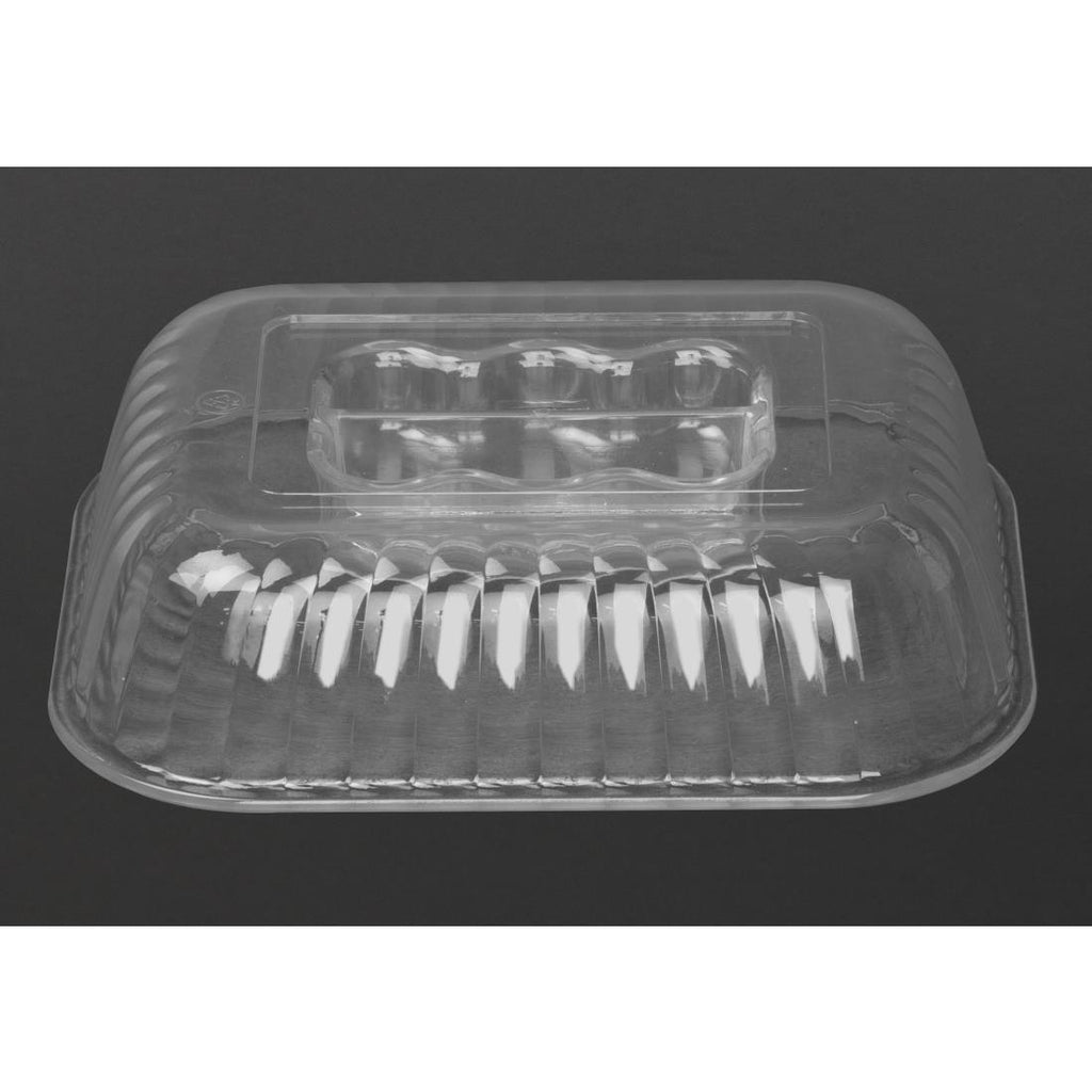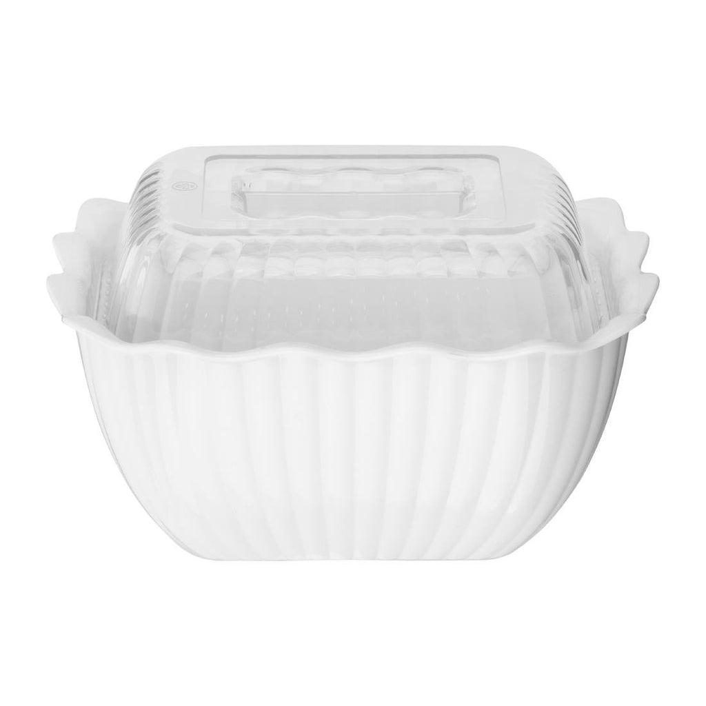 Keep your food fresh and protected with this raised lid designed specifically for Olympia Kristallon small salad crocks. Crafted from durable polycarbonate, this clear lid offers a reliable and long-lasting solution for maintaining the freshness of salads and other foods. Its transparent design allows for easy visibility of contents while keeping everything secure. The lid is dishwasher safe, making cleanup quick and hassle-free.