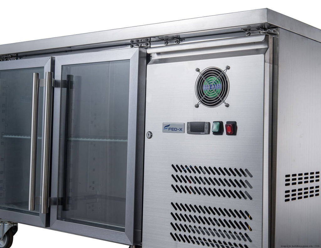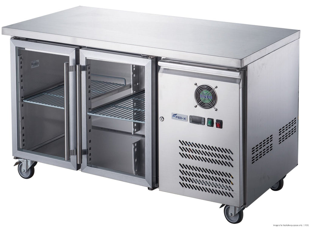 FED-X Two Glass Door Bench Fridge Stainless Steel - XUB7C13G2V