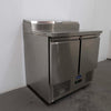 Sandwich Prep Fridge. Features S/S lift up lid, 2 Solid Door Chiller, 5 x 1/6 Gn pans, 2 x Shelves, Bench, On castors, Climate class normal, S/S Finish, Scratches & Dents, Static cooling system, Carel Italian digital controls, Self-evaporating drainage, 900mmW x 700mmD x 1075mmH. 68KG. 10 Amp, 1 Phase.