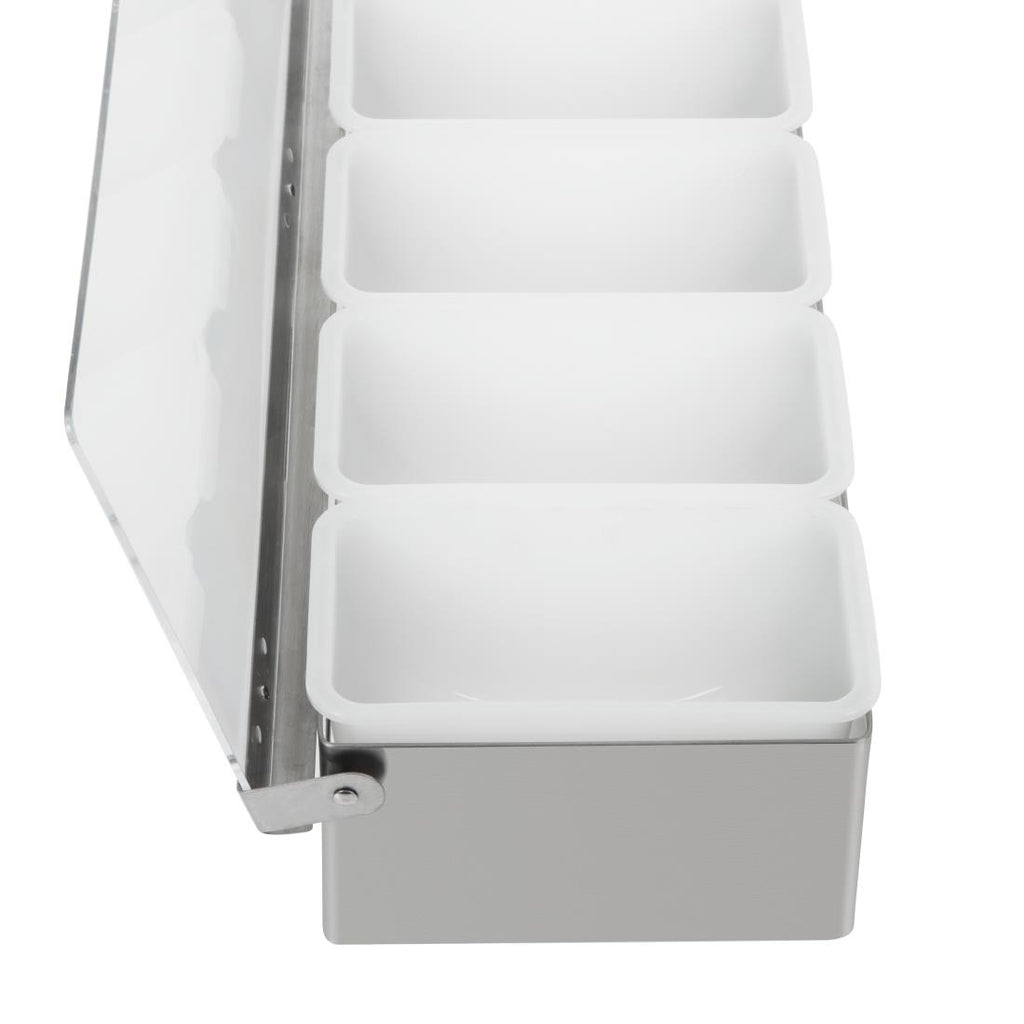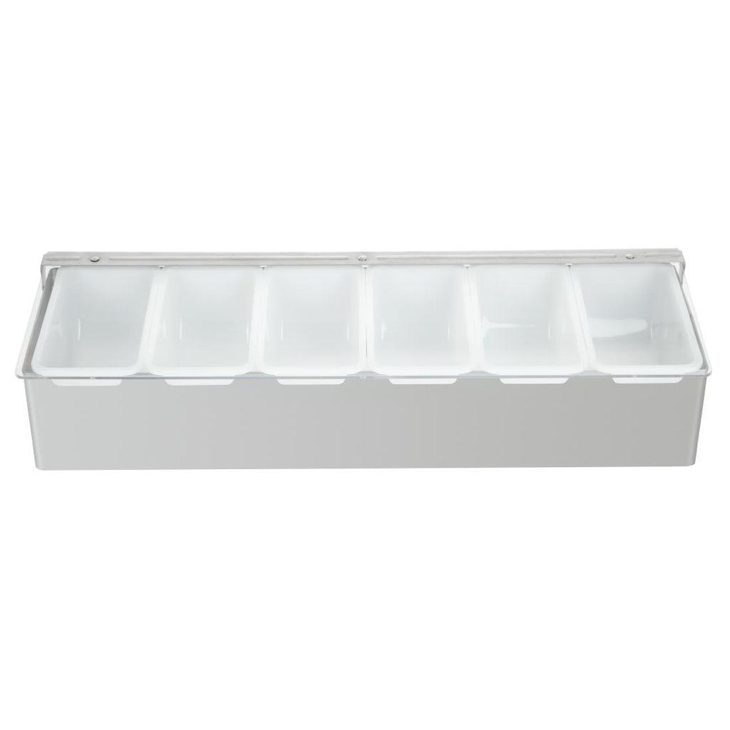 Looking for a dispenser that can separate your garnishes in a clean and concise order? Then the Olympia condiment dispenser will be the product for you. The 6 sections can easily separate the garnishes, thereby reducing cross contamination and possible congealment.
