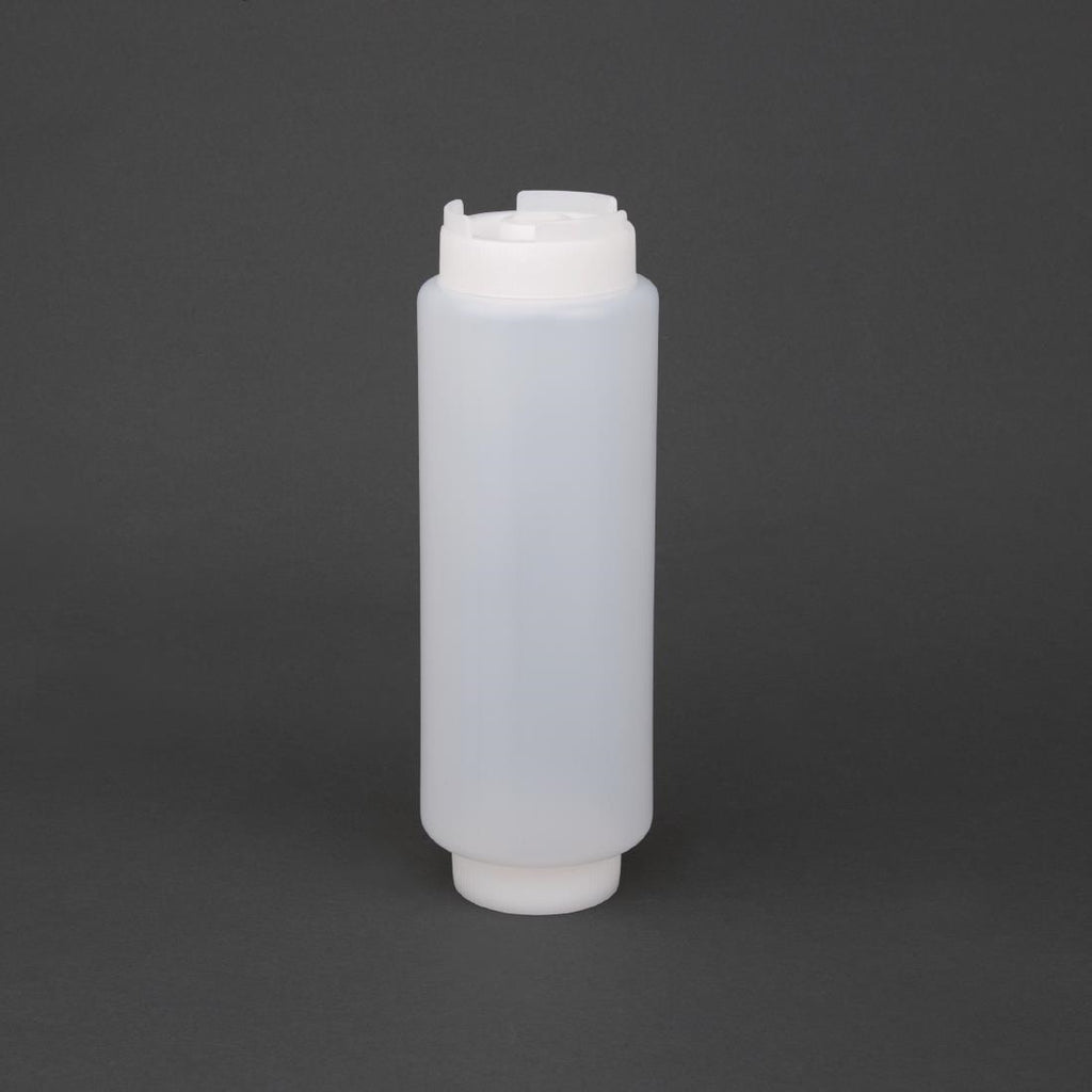 Fast, clean, and easy to use - this 20oz large rotation squeeze bottle from Vogue is designed to make dispensing sauce quicker than ever. It is filled from the top and dispenses from the bottom, with a silicone valve that prevents drips and eliminates mess. Made from polypropylene this squeeze bottle is dishwasher safe, making it quick and simple to clean for continuous use.