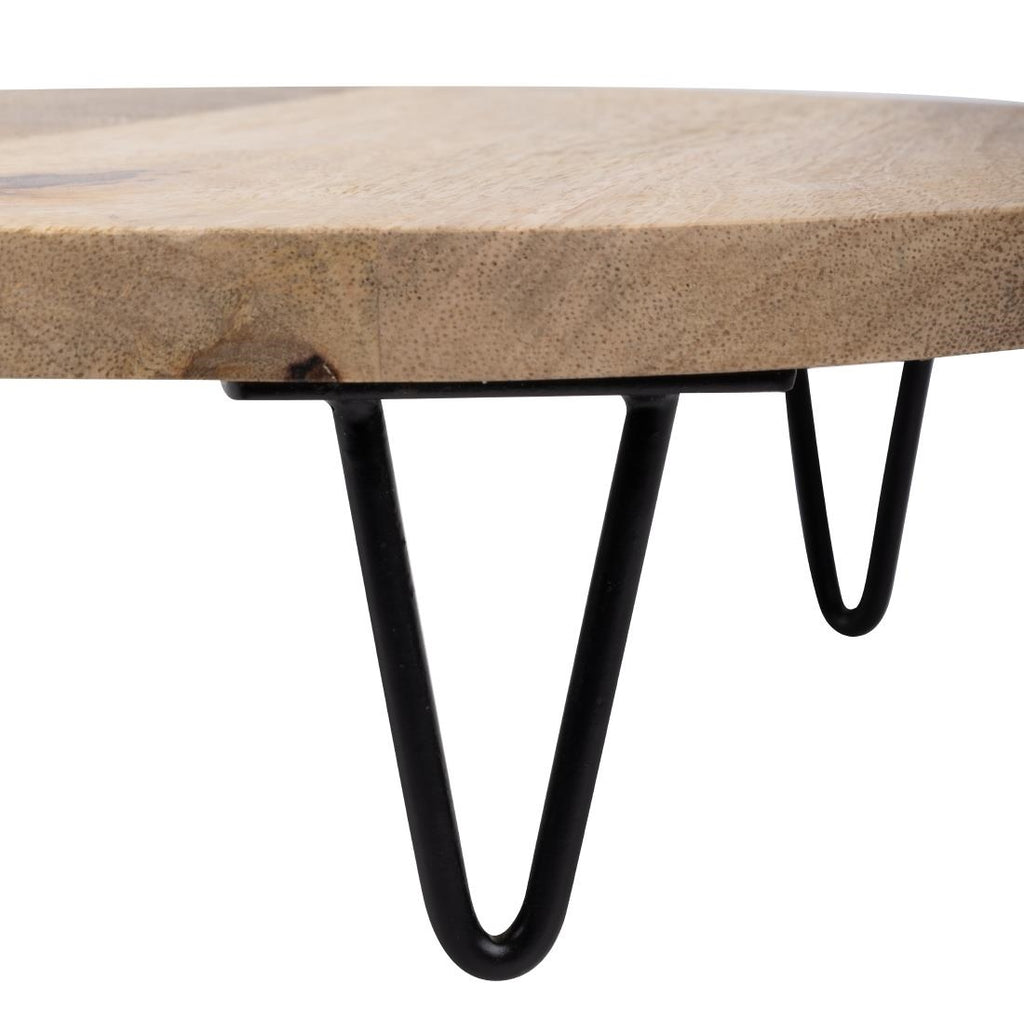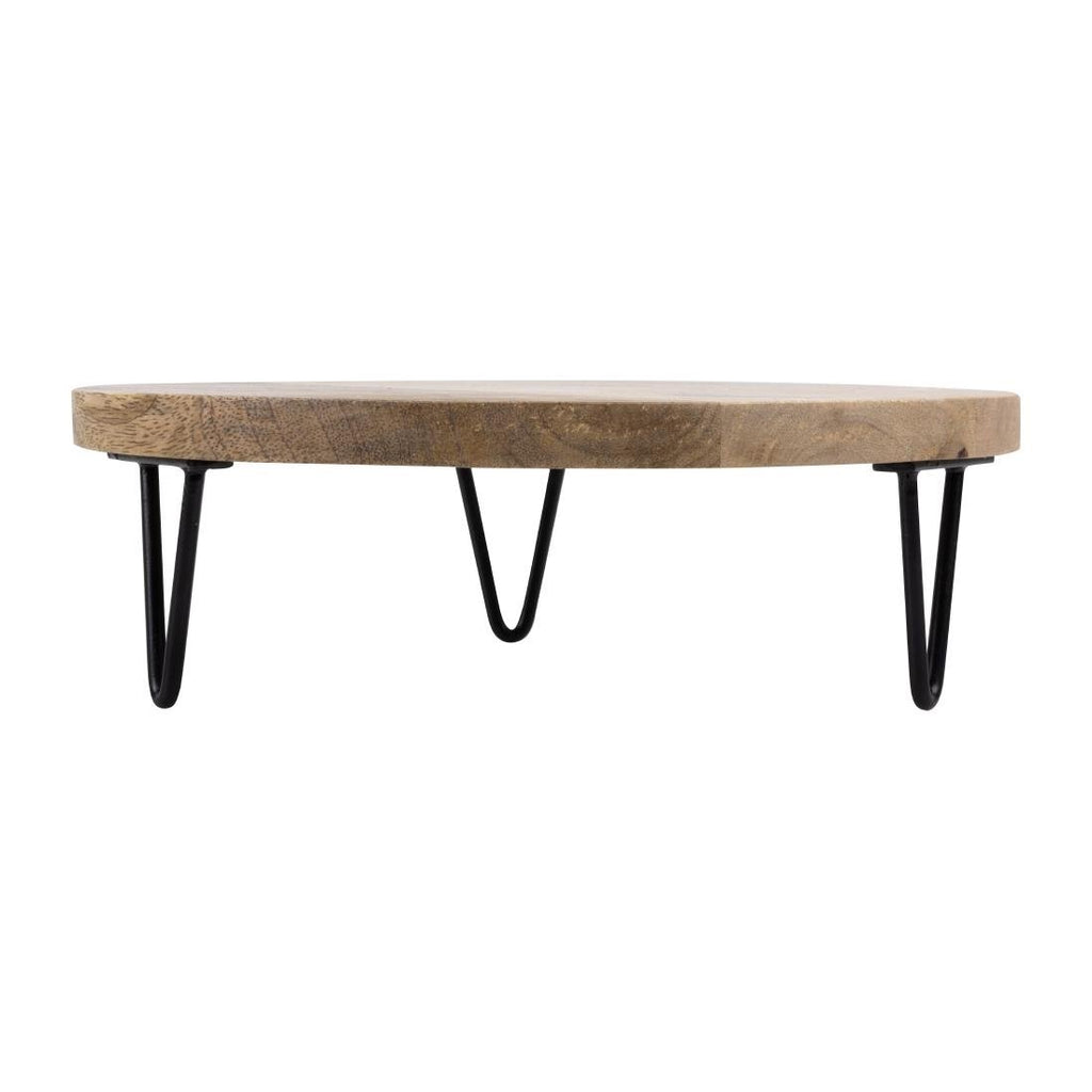 Add depth and rustic style to your tabletop or buffet presentation with this Olympia round display stand. Crafted from mango wood and supported by sturdy metal legs, it's perfect for showcasing vibrant ingredients or dishes. The 250mm size provides plenty of space to serve multiple portions of buffet food. With its easy-to-clean surface, this Olympia stand ensures a quick turnaround of fresh...