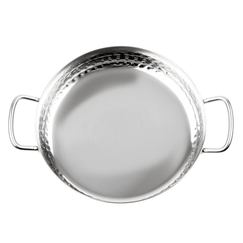 Elevate your service with this stylish hammered stainless steel dish from Olympia. Designed with a raised rim, it effectively prevents spills and keeps food and drink secure during service. The lightweight construction allows staff to easily handle and transport the tray, making it ideal for serving large quantities of appetisers, desserts or beverages. Crafted for durability, this versatile serving dish is also dishwasher safe, ensuring quick and easy cleaning after use.