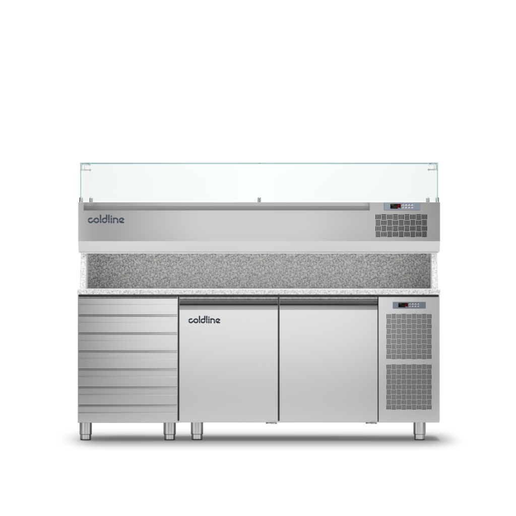 Coldline 2 Door + Drawers Pizza Preparation Counter with Granite Worktop - TZ13/1MC