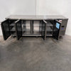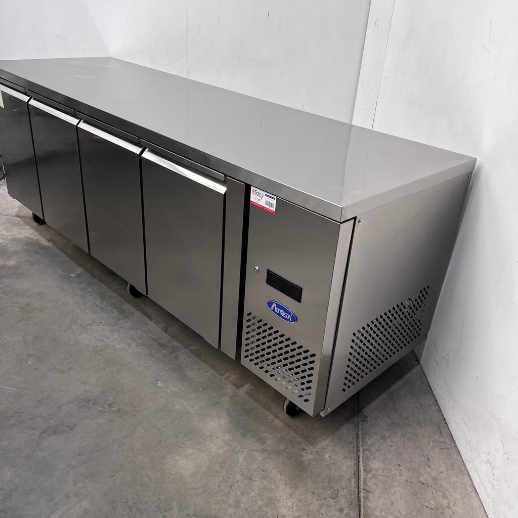 Under Bench Freezer. Features Motor on right, Digital temp controls, 8 x Shelves, On castors, Climate class Normal, 4 Solid Door, Gross capacity: 560 L, S/S Finish, Scratches & Dents, Auto?closing doors, 10 Amp 1 Phase, 2235mmW x 700mmD x 840mmH, 141KG