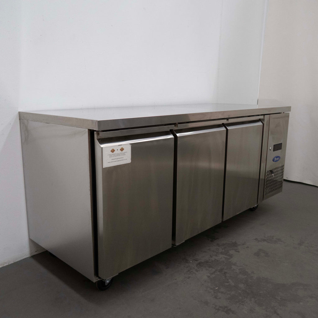 3 Solid Door Underbench Freezer. Features 3 Solid Door, Motor on right, Digital temp controls, 6 x Shelves, On castors, Climate class sub tropical, Fan-forced system, Automatic defrost, S/S Finish, Scratches & Dents, Self-evaporating condensation, 10 Amp 1 Phase, 1800mmW x 700mmD x 840mmH, 120KG