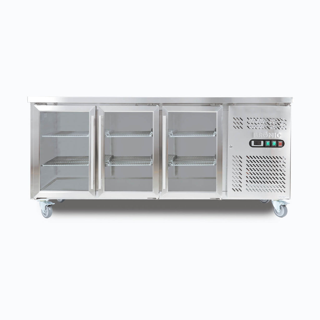 If you're looking for a quality unit with great features, consider the UBC1795GD Underbench Display Chiller 417L LED by Bromic. This commercial cooling equipment allows business owners to maximise space beneath counters or work tables by using them as cold storage areas. The UBC1795GD chiller is equipped with powerful fan-forced refrigeration, allowing the interior cabinet to cool evenly and quickly. Food items in a variety of sizes and heights are secured by narrow shelving. Shelf Extenders also prevent products from falling over. Finally, the side-mount condenser allows for the unit's easy maintenance.