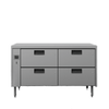 Space saving, low height remote refrigerated counter designed specifically to accommodate chargrills and griddles