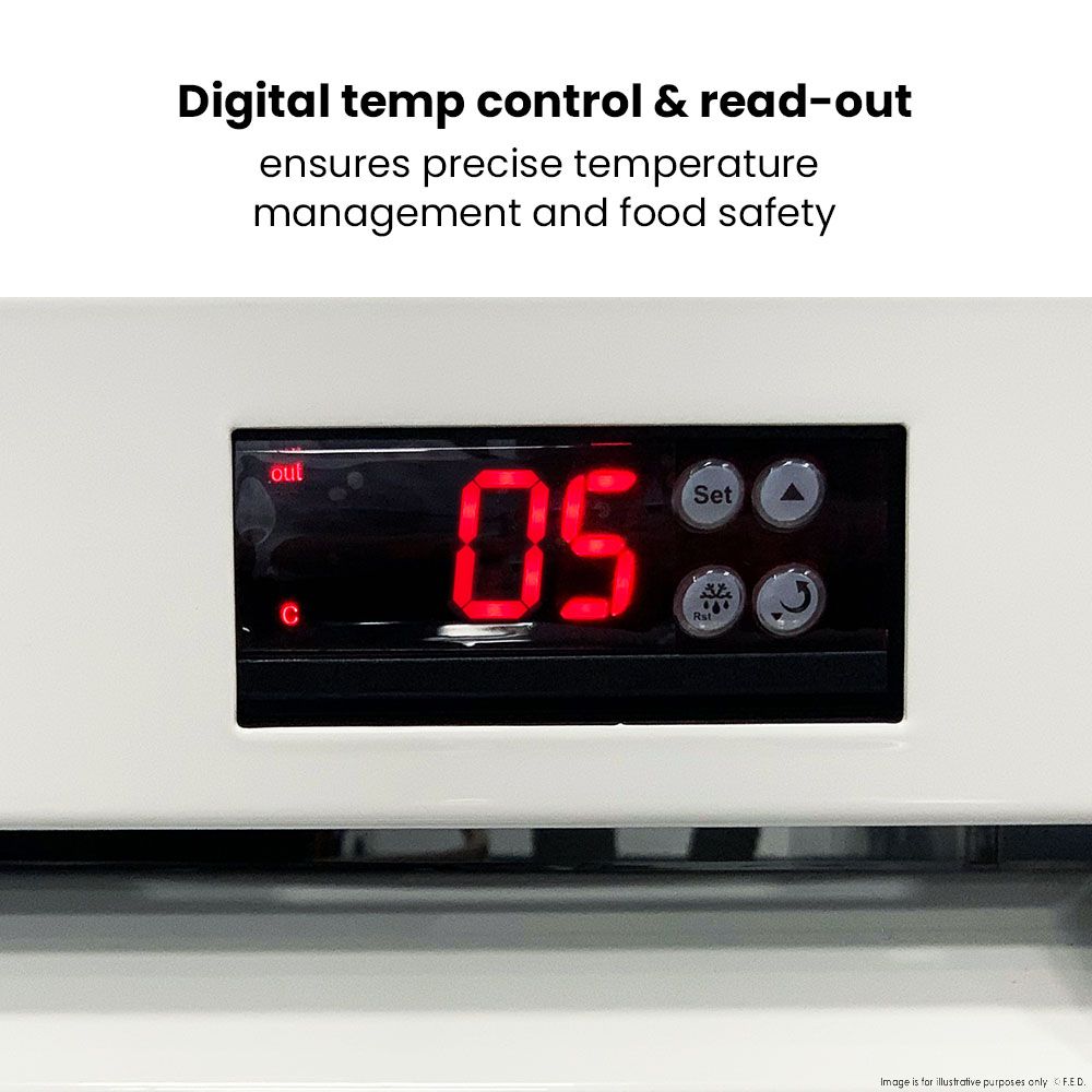 The stylish drink fridge is one of our premier single upright fridge units that cools and freezes your stock and ingredients. It can maintain the perfect temperature for your frozen food or ice-cold drinks. This slim fridge is a special fit for any restaurant, café, supermarket, takeaway store, or bar needing a visually striking unit with easy, quick access.