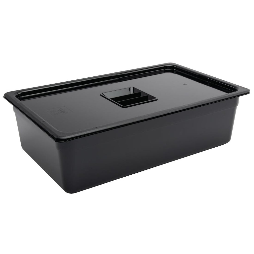 Store your food with this Vogue polycarbonate 1/1 gastronorm container in black (150mm/19.5Ltr).