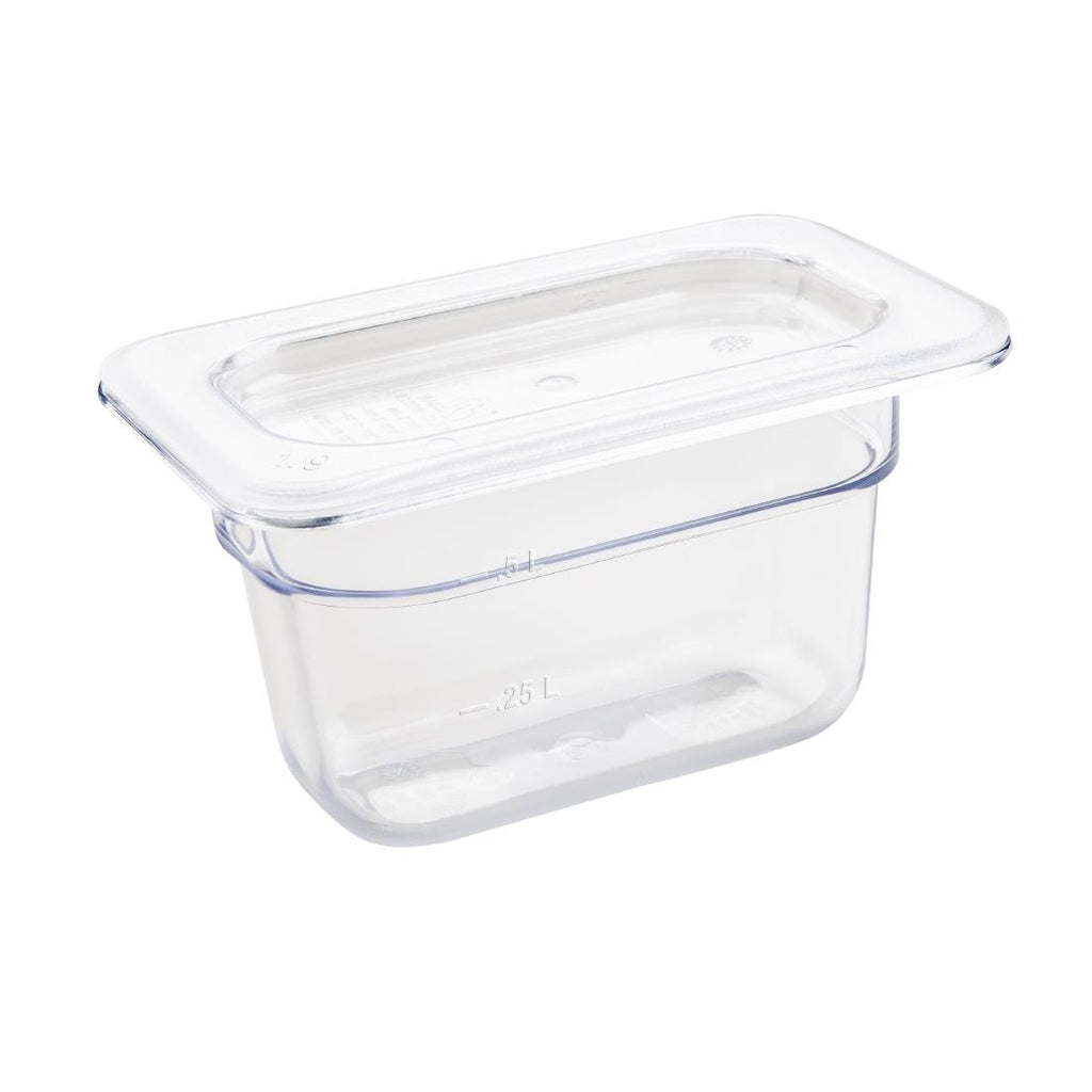 The premium grade polycarbonate plastic of the container makes it incredibly strong and ensures its long life in your kitchen, saving you money on buying replacements. The transparency of the plastic allows you to check contents quickly and easily during a busy service and save time.