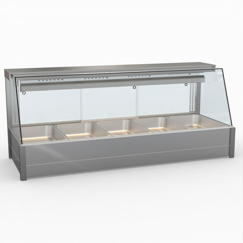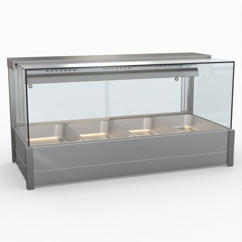Roband Straight Glass Hot Food Display Bar, 4 pans single row - E14