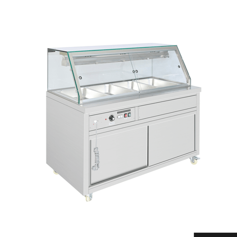 Roband Square Glass Hot Food Display Bar, 4 pans double row with roller doors - S22RD